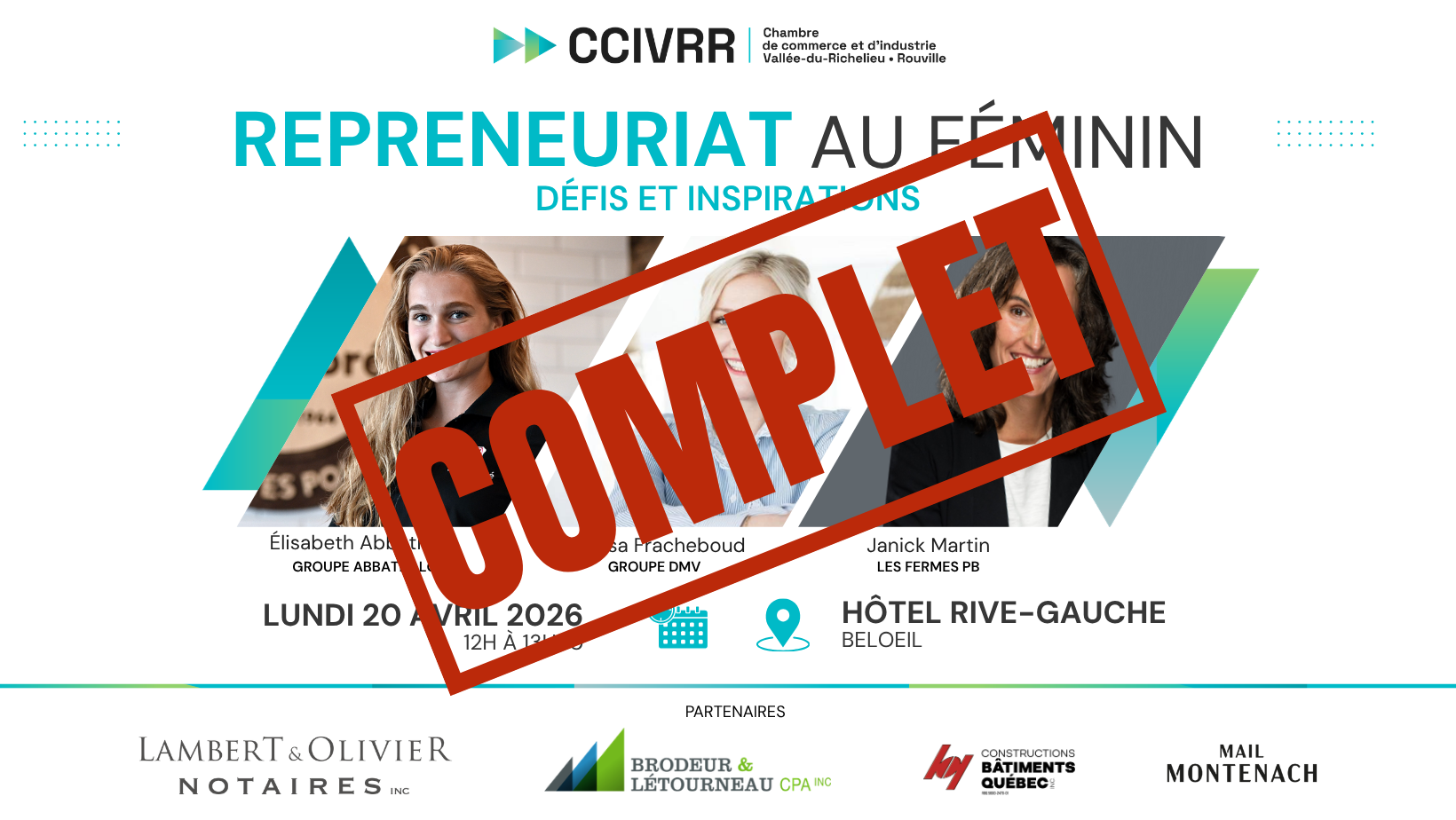 Cette année, place au repreneuriat au féminin : un sujet riche et profondément humain, où héritage, vision et audace se rencontrent. Sous le thème «Repreneuriat au féminin : Défis et inspirations», trois femmes d’affaires aux parcours remarquables viendront partager leur expérience, leurs apprentissages et leur vision de l’entrepreneuriat :